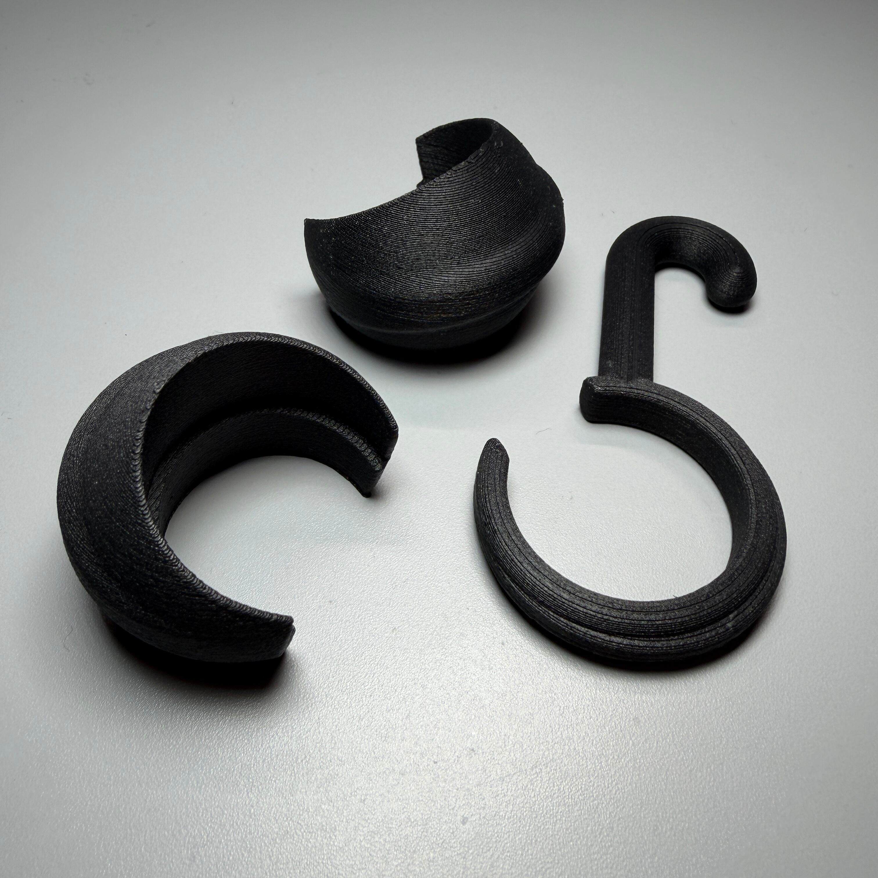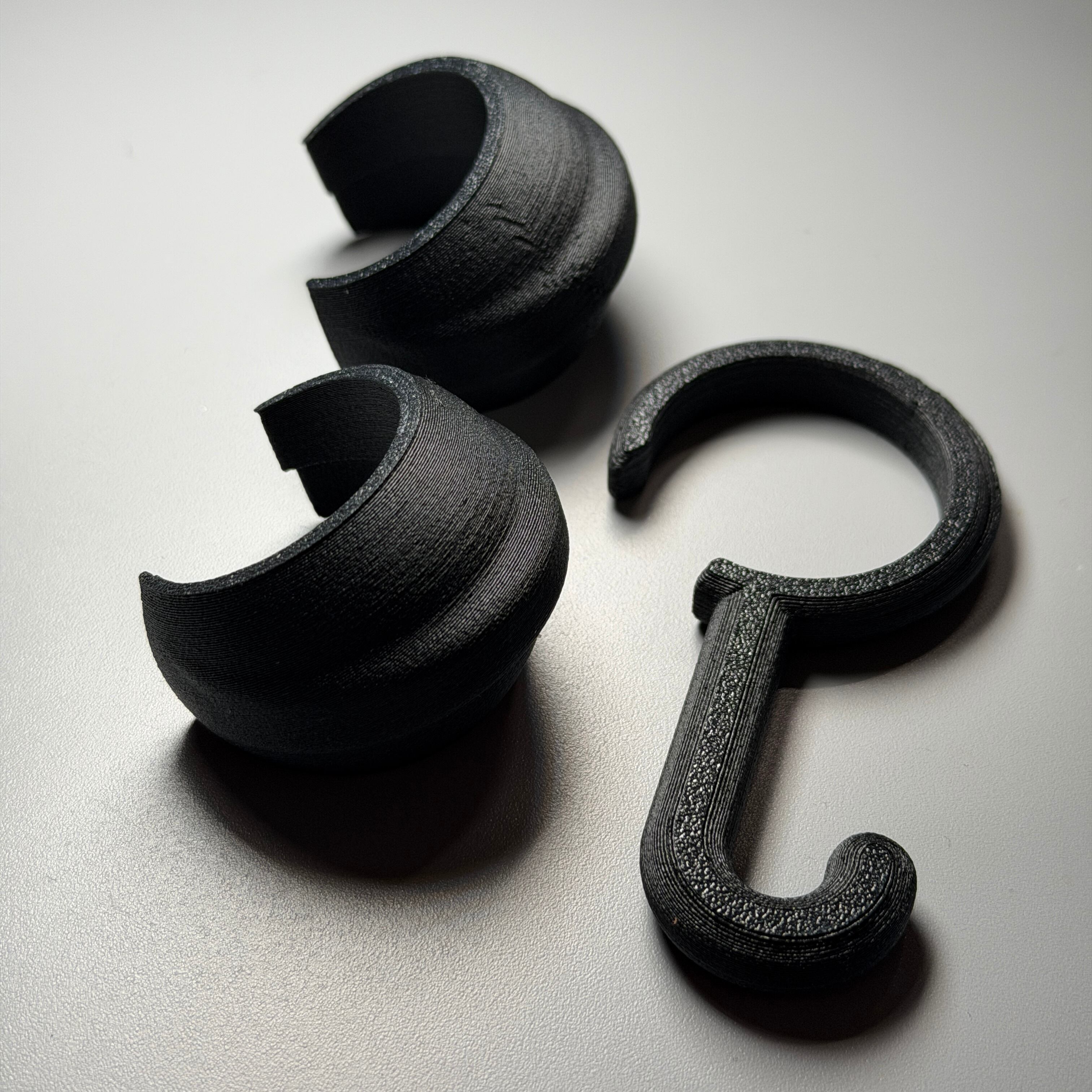 色は若干マットなブラック。素材は耐熱性と耐久性に優れたカーボンファイバー配合のASAフィラメントを使用しております。